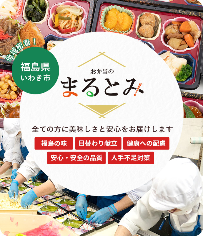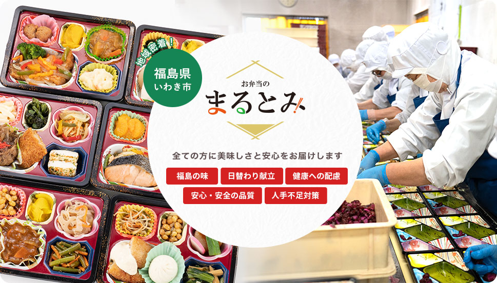 まるとみは高齢者向けのお食事だけでなく、地元福島県いわき市を中心に、企業向けに1日5,000食のお弁当をお届けしております。